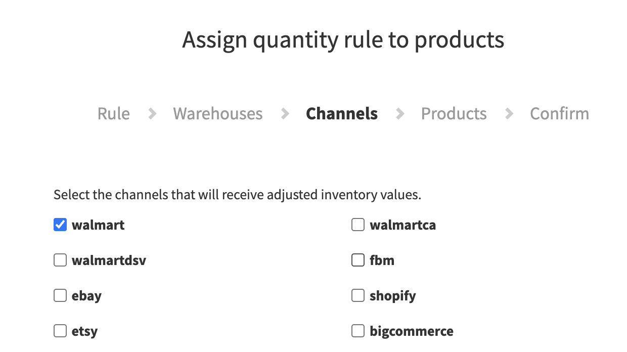 This feature is especially useful when you want to protect stock in one location, prioritize certain marketplaces, or avoid overselling. For example, you may want to send only a few units of inventory from your warehouse to Walmart, keep a fixed quantity reserved for Shopify, or limit a warehouse to supplying only one marketplace. Quantity Rules help you manage risk, maintain balanced stock levels, and align inventory allocation with your overall sales strategy.