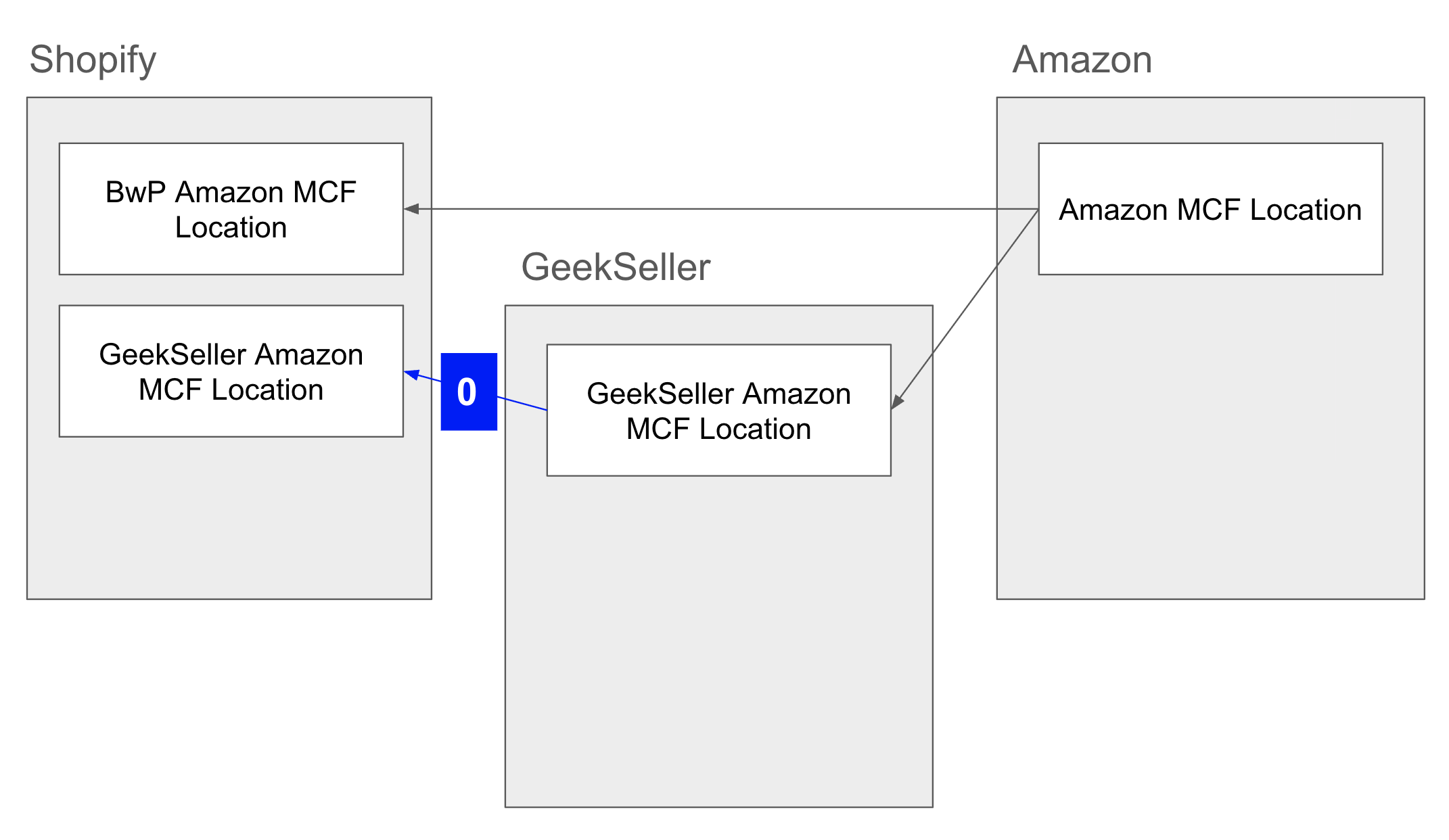 - Always send quantity = 0 to the GeekSeller MCF location in Shopify