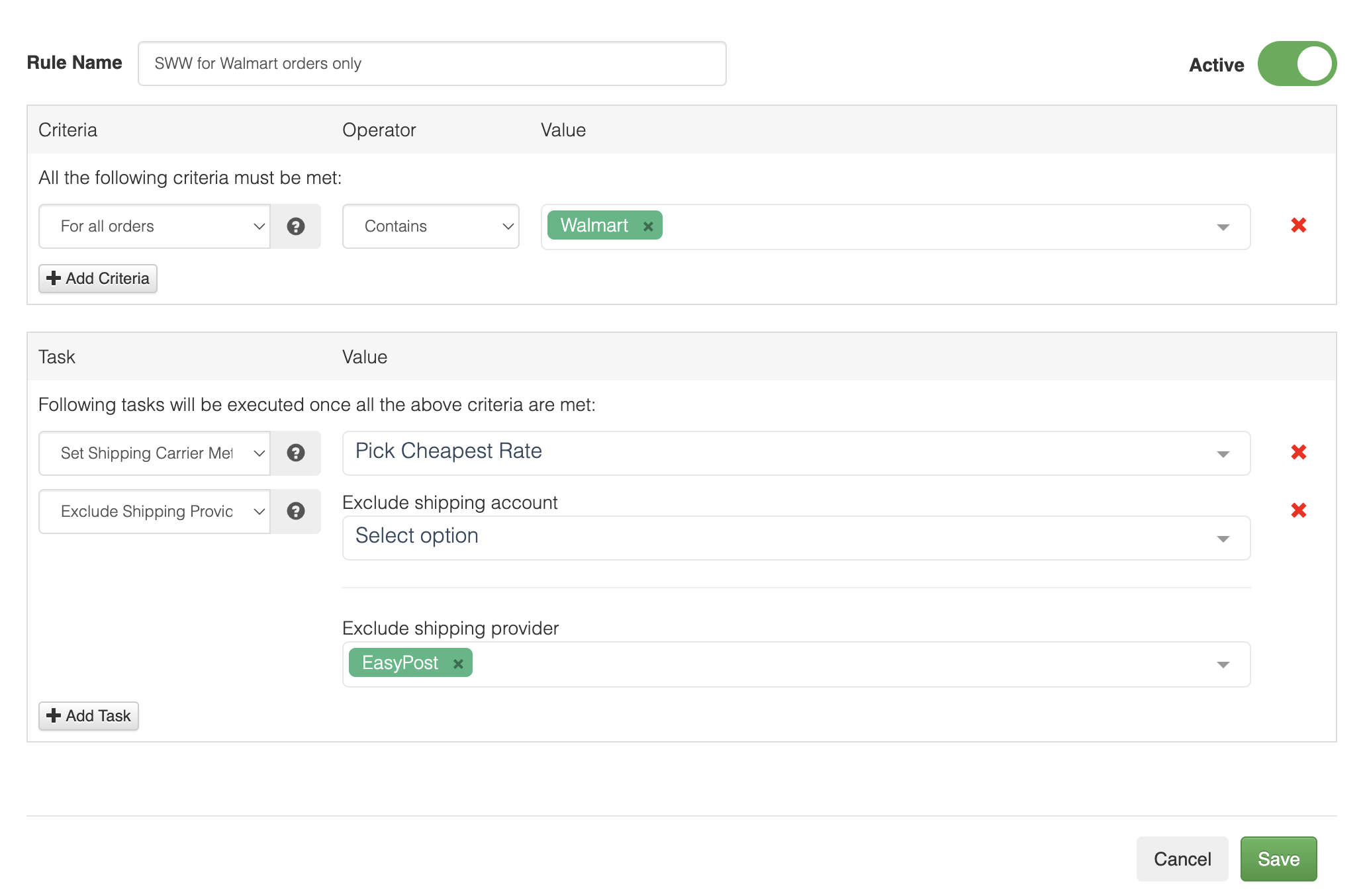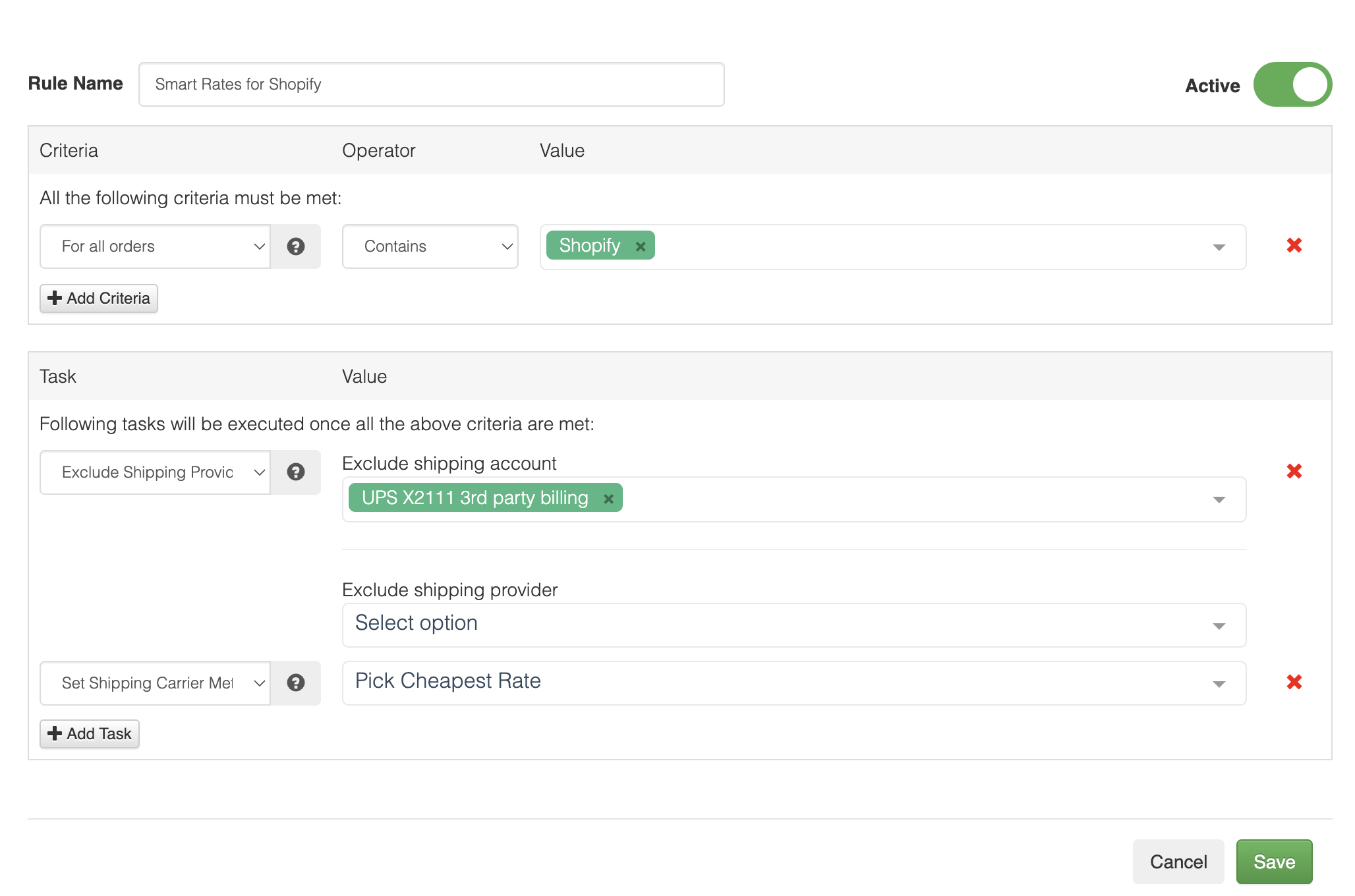 Cost Savings: Automatically select the cheapest or fastest option within your defined rules.