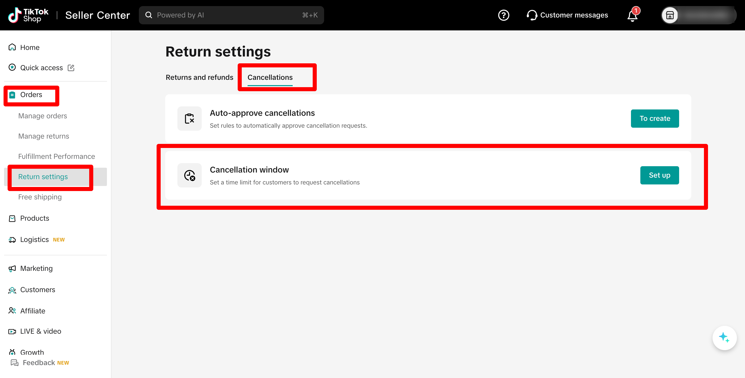 If you sell on TikTok Shop, you should review your cancellation window settings. TikTok allows you to define how long customers can cancel an order. The official article is available here. The cancellation setting can be found under: Orders > Return Settings.